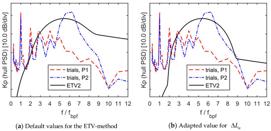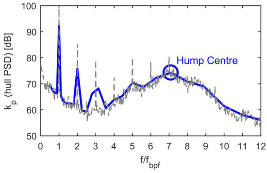 in which the non-dimensional empirical constants and were obtained by curve fitting of Equation (10) to the experimental data. Raestad [21] has used in his formulation, but the value is used in the present method as this is closer to the trend seen in the datasets. The contribution from the total number of blades is summed as a set of incoherent sources. The formulation for the centre frequency is based on theoretical considerations and is given by