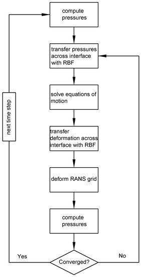 Recently, MARIN has developed an FSI module in ReFRESCO, the implementation and a verification study have been presented in [31]. The method is a partitioned strong coupling approach, meaning that the fluid and structural problem are solved separately and coupling iterations are performed each timestep to obtain the coupled solution. To stabilize this procedure under-relaxation is applied by means of the Aitken adaptive under-relaxation method. For transfer of information across the fluid–structure interface, a radial basis-function (RBF) interpolation is used.