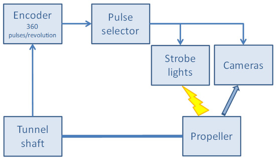 - A pulse selector is able to select one of these 360 pulses as a trigger, which is sent to the stroboscopes and the cameras. Therefore, a trigger can be supplied, with a resolution of one degree for every blade position. The cameras and the strobe are synchronized such that the strobe flash falls within the time frame that the camera shutter is open.