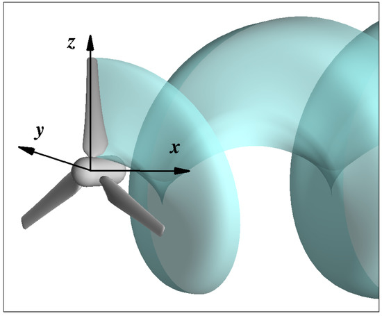 In the present study, a semi-analytical model is used to determine the wake surface in Equation (2). The wake is defined as a generalised helicoidal surface with distributions of axial pitch and radial expansion of the streamtube downstream of the rotor that are consistent with the operating mode of hydrokinetic turbines.