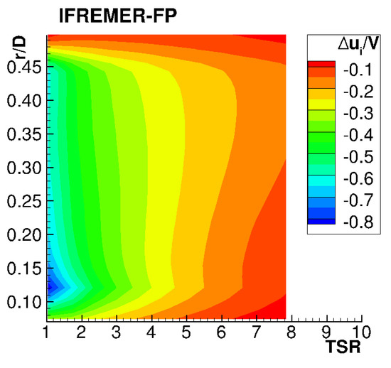 IFREMER-FP turbine. Calculated axial induced velocity distribution at rotor plane.