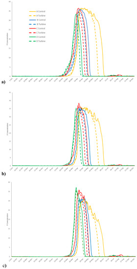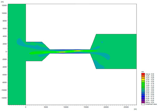 Average residence time of water in the basin increased by 5%, from 6 days, 13 h, 43 min without turbines to 6 days, 21 h, 48 min with TEDs. Average differences in flow speed over one tidal cycle (12.4 h) varied inside the channel (up to 0.32 m/s) but only by a small (<0.04 m/s) amount in the basin and the open sea (Figure 5). Water flow in the centre of the channel decreased with the introduction of the tidal turbines, while flow speed near the shore of the channel increased.