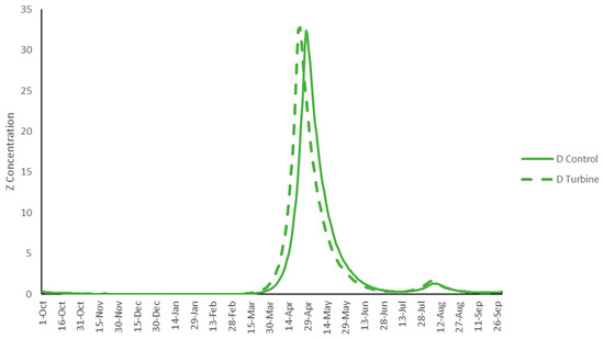 Annual variation in zooplankton concentration in the basin under PAR scenario D (Figure 4).