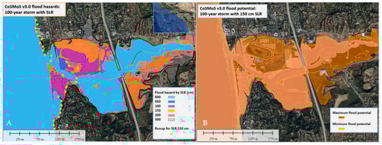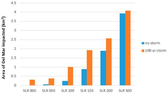 The coincident occurrence of storm-driven elevated water levels with high astronomic tides yield the greatest flooding [30,31]. Whereas astronomic tide ranges along the open coast are well predicted and not expected to significantly vary over the 21st century compared to historical levels [32], rates of SLR and the frequency and magnitude of storm-generated water levels are less well-constrained, and thus are the main foci of this study.