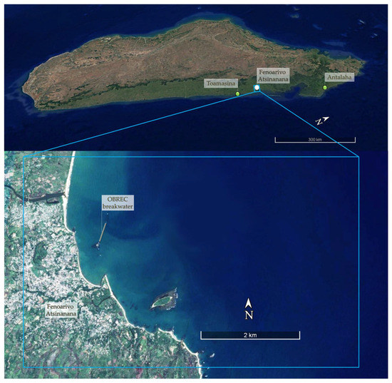 Map of the north-eastern Madagascar coasts showing the location of the analysed OBREC installation at Fenoarivo Atsinanana.