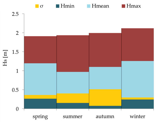 Seasonal wave climate characterization, in terms of significant wave height, averaged over 20 years at the study site.