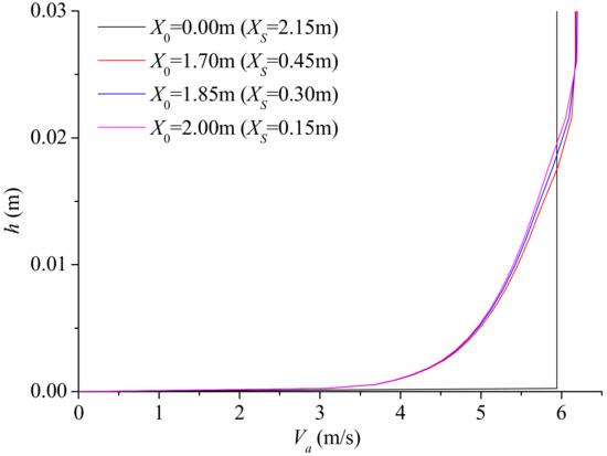 Simulated axial velocity profiles in shroud-surface boundary layer, where h is the normal distance from the shroud surface, X0 is the distance measured from the inlet, and XS is the distance to the nose of shaft cap.