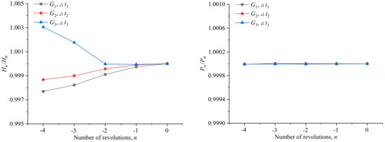 where and denote the maximum and minimum values of simulated results in the last two oscillation periods according to [10]. In this work, however, the iteration uncertainty is estimated conservatively by using the data over a complete revolution of the rotor, since the simulated integral quantities oscillate with time randomly and at high frequencies. Besides, it is necessary to exclude the contributions from the simulated physical oscillations in the integral quantities, although they are usually quite small in magnitude.