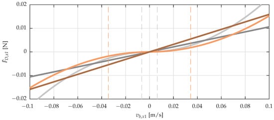 Possible linearization methods for Equation (1) are harmonic or stochastic linearization. In the case of harmonic linearization, the error due to neglected higher-order terms is minimized for a sinusoidal velocity time series. Stochastic linearization methods improve the linearized model quality for stochastic velocity time series. A discussion with a comparison of alternatives can be found in [].