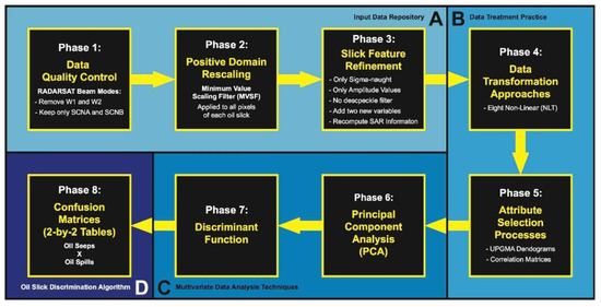 Figure 2. While in-house Python codes are used to run the oil slick RADARSAT-2 related analyses (i.e., Phases 1–4), PAST (PAleontological STatistics: version 3.20, Oslo, Norway [