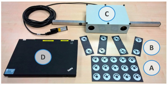 - D—Laptop: used for obtaining the pairs of images and carrying out the post-processing.