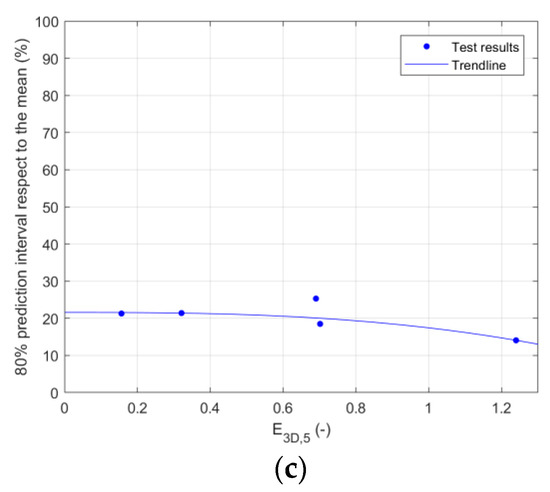 Eighty percent prediction interval with respect to the mean (for 27Dn50 characterization width). (a) S parameter, (b) E2D parameter, E3D,5 parameter.