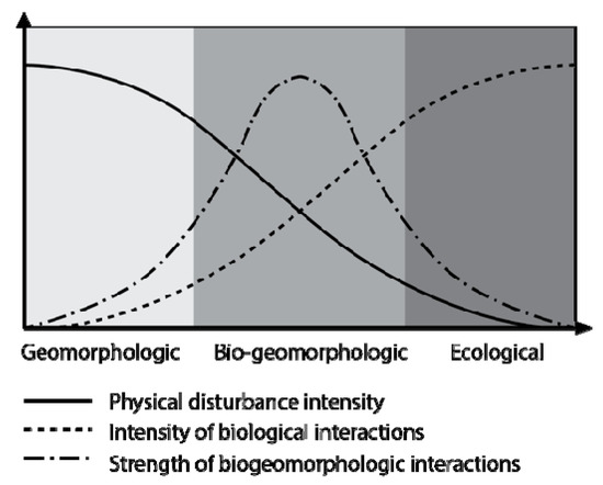- Anthony Stallins, J.; Corenblit, D. Interdependence of geomorphic and ecologic resilience properties in a geographic context. Geomorphology 2018, 305, 76–93. [Google Scholar] [CrossRef]