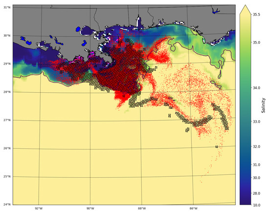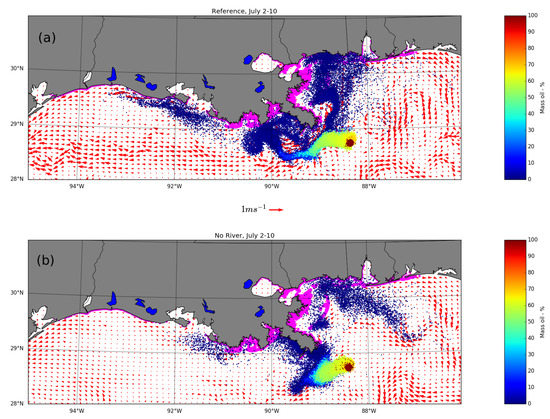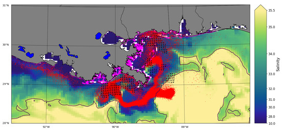 - Kourafalou, V.H.; Androulidakis, Y.S. Influence of Mississippi River induced circulation on the Deepwater Horizon oil spill transport. J. Geophys. Res. Ocean. 2013, 118, 3823–3842. [Google Scholar] [CrossRef]