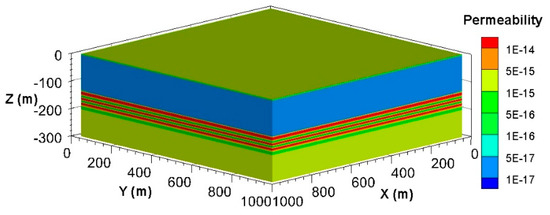 Permeability distribution of the layered heterogeneity model.