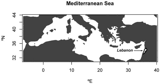 Lebanon is located in the eastern Mediterranean with a shoreline of approximately 210 km (Figure 1). Electricity generated in the country originates mostly from fossil sources that need to be imported. Following the 2020 objective for 12% of electricity from renewable sources in Lebanon [], some studies have pointed out that electricity from renewable sources—solar and wind energy—needs to be incorporated into the electric mix [,,,].
