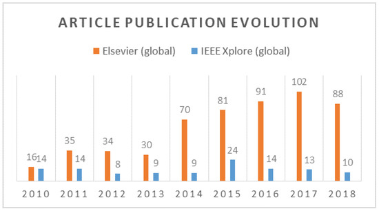 On the basis of research papers from the 2010–2018 period, containing the keyword ‘hydrokinetic’, in the specific resource IEEE Xplore and the multidisciplinary resource ScienceDirect (Elsevier), and respectively limited to the ’Conferences’ and ’Journals & Magazines’ categories in the first resource and to the ’Review’ and ’Research’ in the second, a statistic overview has been realized.