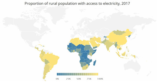 Proportion of rural population with access to electricity, 2017 [12]. Source: Reproduced with permission from IEA (2017) Sustainable Development Goal 7, 2017.
