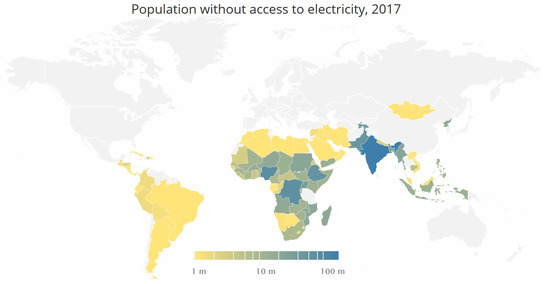 Population without access to electricity, 2017 [12]. Source: Reproduced with permission from IEA (2017) Sustainable Development Goal 7, 2017.