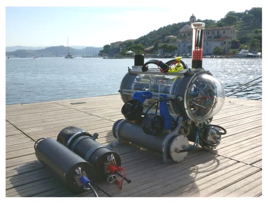 - Allotta, B.; Pugi, L.; Bartolini, F.; Costanzi, R.; Ridolfi, A.; Monni, N.; Gelli, J.; Vettori, G.; Gualdesi, L.; Natalini, M. The THESAURUS project, a long range AUV for extended exploration, surveilance and monitoring of archeological sites. In Proceedings of the V International Conference on Computational Methods in Marine Engineering ECCOMAS MARINE 2013, Hamburg, Germany, 29–31 May 2013; pp. 760–771. [Google Scholar]