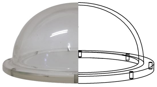 The differences between the selected materials had a profound influence on the design phase. In fact, the aluminum parts were sized to ensure structural resistance to impacts, which represent another type of possible failure. This choice also ensured that the aluminum parts could endure buckling instability: for this reason, given the difference in the thicknesses of the various elements, this work performed buckling optimization only for the PMMA components (also because this material has a much lower yield strength and Young’s modulus). The PMMA domes and the main tube are connected by aluminum rods and flanges, which are equivalent to ring-stiffeners (Figure 4).