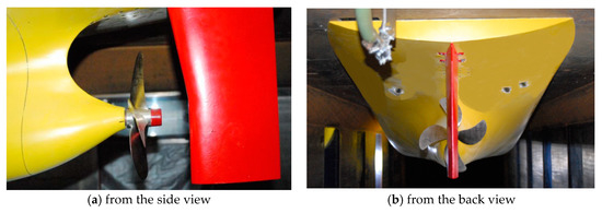 The free surface is neglected, and the effect of the stern wave on pressure is not taken into account either in the experiment or in the numerical calculation, because the stern wave height of the low-speed vessel (Fr < 0.2) is generally less than 0.5 m at full scale, which will be negligible at model scale in the experiment.