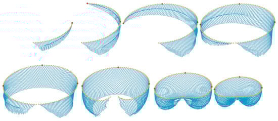 The net shape is potentially subjected to impacts from net construction, operational skill, and procedures, as well as the presence of and changes in ocean currents. In particular, the geometrical shape could be severely deformed when exposed to rough seas with strong surface currents or unfavorable combinations of multi-layer currents. The magnitude of current velocity, for instance, as demonstrated from a mixed factorial model, has a quadratic effect in impeding vertical sinking []. However, alternative shooting patterns can effectively reduce such negative effects by changing the relative orientation between the net circle and the current. Different shooting patterns, such as forward-set, counter-set, or cross-set, can lead to various shape-transforming reactions [].