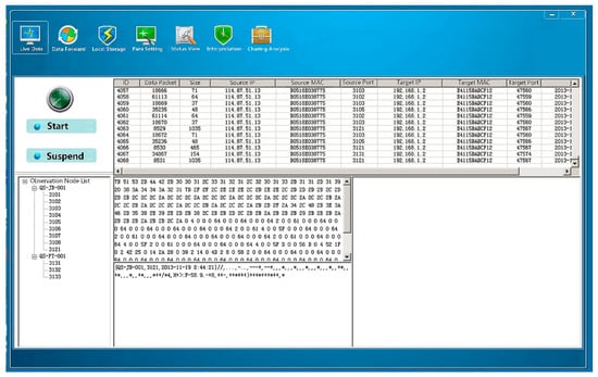 In terms of data storage, abnormal data are eliminated by examining data repeatability, data length, and exception field. The abnormal data are particularly flagged by a data quality control method proposed for ECSSOS, which improves the autoregressive integrated moving average (ARIMA) model by using a sliding window to check and repair seafloor observatory data quality []. The method contains three parts: (1) a general pretest to detect and delete redundant data, label stuck values, and decide whether the data gap is suitable for interpolation; (2) data outlier detection methods to flag abnormal data points by range rationality test and ARIMA model based test; (3) a data interpolation method to repair suspect and missing data after assessment by providing alternative data values rather than removing or rejecting any data points. Furthermore, a quality control flag system is proposed to describe and append the data quality-related information with data sample records. Scientific data are thus managed in a unified manner in the seafloor observatory database, and different data access authorities are assigned to users and external systems. In addition, data entry integrality is examined by regularly accessing raw data files written by the data acquisition module and comparing the interpreted file data with data stored in the database. Real-time data interpretation of ESODDS is shown in Figure 5.