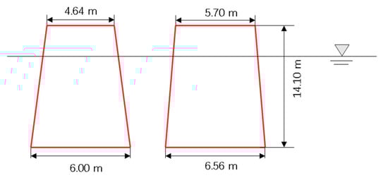 Figure 2 shows the geometry of the 3-MW and 4-MW monopile wind turbine towers. The foundations of the wind turbine towers are nearly vertical structures. The diameter of the 3-MW and 4-MW monopile wind turbine towers at waterline is 5.30 m and 5.83 m in full scale, respectively, and their slope angle is 87.2 degrees and 88.3 degrees, respectively.