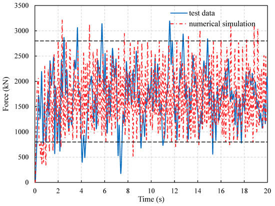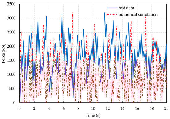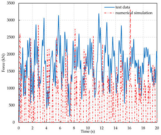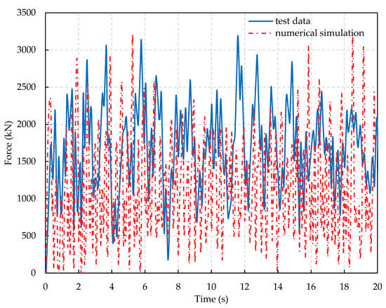 Appendix A. The Time Series of the Horizontal Ice Forces from Both the Simulations and Measurement for Test #304
