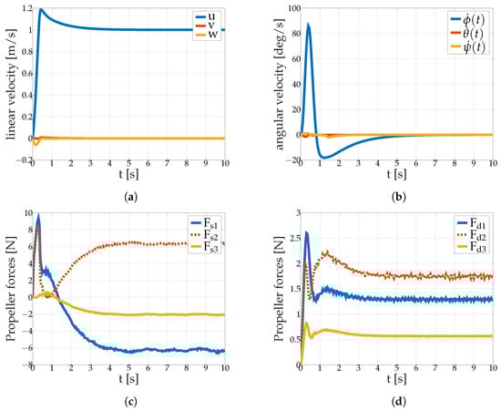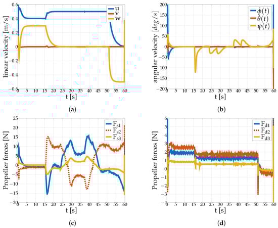 In Figure 10c,d are also plotted the forces from the two propellers groups: surge/sway/yaw and dive/roll/pitch.