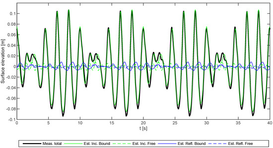 Additionally, the time series are plotted in Figure 1, which demonstrates that phases are also correctly calculated. Moreover, the figure gives an overall impression of the accuracy, as the estimated incident time series including only bound higher harmonics is almost identical to the target. Moreover, the estimated incident free higher harmonics, as well as the reflected components, are insignificant. Therefore, the implemented method was validated for data, fulfilling the assumptions of the method.