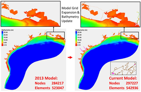 - Akbar, M.K.; Luettich, R.A.; Fleming, J.G.; Aliabadi, S.K. CaMEL and ADCIRC Storm Surge Models—A Comparative Study. J. Mar. Sci. Eng. 2017, 5, 35. [Google Scholar] [CrossRef]
