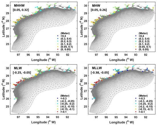 - Xu, J.; Myers, E. Modeling tidal dynamics and tidal datums along the coasts of Texas and Western Louisiana. In Proceedings of the 11th International Conference on Estuarine and Coastal Modeling, Seattle, WA, USA, 4–6 November 2009. [Google Scholar]