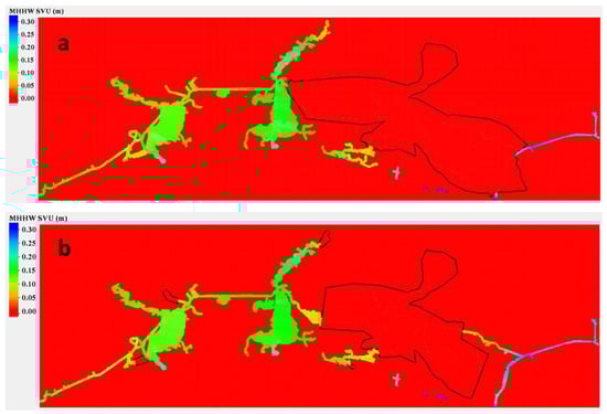 | ADCIRC-SVU | 0.03 (−0.010) | 0.03 (−0.010) | 0.00 (−0.010) | −0.03 (−0.010) |