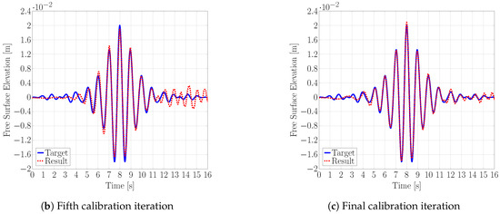 Figure 12 shows the target and resulting surface elevation time traces after nine calibration iterations for the overall best setting, that is a source length of .