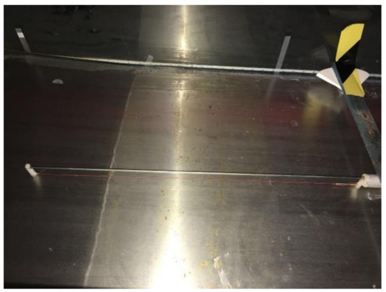 Laboratory experiments were performed in the two-dimensional wave flume (Dalian University of Technology, Dalian, China) of the Ocean Experiment Hall at Zhejiang University. Figure 1 shows a schematic layout of the experimental setup. An idealized reef-beach model was designed and placed in the wave flume to reproduce the main aspects of a fringing reef adjacent to the back-reef beach based on the Froude similarity with a geometric scale factor of 1:100. The offshore water depth in front of the reef model was 0.413 m, and the water depth above the reef flat was 0.03 m. Accordingly, at the prototype scale, the characteristic fore-reef slope angle (1:3), reef flat width (493 m), and the water depth over the reef flat (3 m) were within the common ranges reported in Quataert et al. [46]. Seven wave gauges (HR Wallingford, Oxfordshire, UK) were used in the experiment. One Wave Gauge (WG1) was positioned seaward of the reef in deeper water. Two gauges (WG2, WG3) were placed over the fore-reef slope. One gauge (WG4) was placed at the reef edge, and two gauges (WG5, WG6) were placed at the middle and end of the reef flat. Moreover, the run-up motions were measured by a 2 m-long wave gauge, which was laid parallel on the back-reef slope (Figure 2). Solitary waves were generated by the piston-type wave maker with incident wave heights from 0.01 m–0.07 m. The generation technique followed the method described in Guizien and Barthélemy [47]. Further details on the experimental setup can be found in Ning et al. [38]