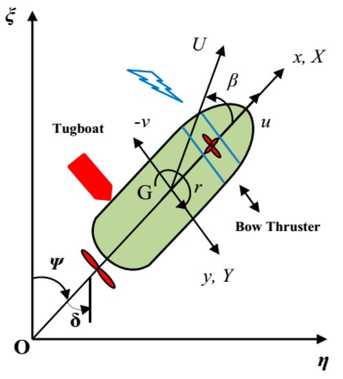 Figure 2. In the first stage, the ship’s heading and speed are controlled by changing the rudder and propeller to bring the ship towards nearby wharf; in the second one, thruster and tugboat are usually employed to push the ship to the final wharf. Many studies have been done to develop a system that can automate the ship berthing process. In References [