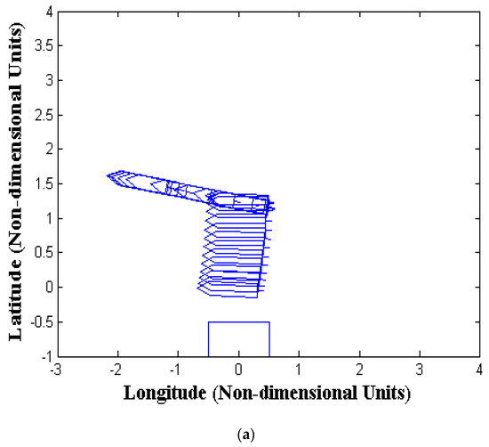 In this section, numerical simulations were carried out in the MATLAB environment to validate the effectiveness of the proposed system for automatic ship berthing control. Because the dimensions of the virtual port area (longitude and latitude coordinates) and the length of the ship are scaled down in computer simulations, the port area and ship length must be normalized into a non-dimensional form by dividing the latitude and longitude to the length of the ship (