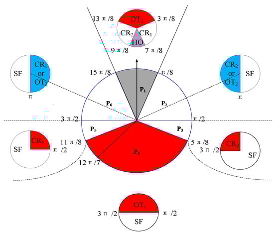| P6 θT∈[3π/2,15π/8] | CT∈ [0, π] θO < 5/8π Ds ≤ DCPA R ≤ 6 n mile | CT∈ [0, π] θO > 5/8π Ds ≤ DCPA R ≤ 3 n mile |