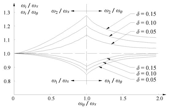 The natural frequencies of the above coupled equation sets (2) can be described as the following formula without considering the damping: