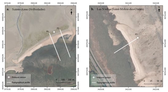 - Suanez, S.; Cancouët, R.; Floc’h, F.; Blaise, E.; Ardhuin, F.; Filipot, J.F.; Cariolet, J.M.; Delacourt, C. Observations and predictions of wave runup, Extreme water levels, and medium-term dune erosion during storm conditions. J. Mar. Sci. Eng. 2015, 3, 674–698. [Google Scholar] [CrossRef]