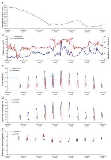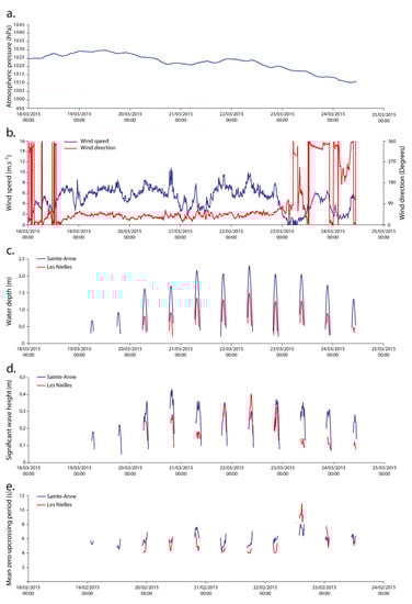 - Mury, A.; Collin, A.; Etienne, S. Wave attenuation service of saltmarshes and shelly cheniers: A spatio-temporal study in Mont-Saint-Michel Bay, France. In Proceedings of the EGU General Assembly Conference, Vienna, Austria, 8–13 April 2018. [Google Scholar]