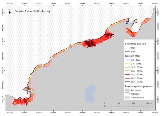 - Bitoun, R.E.; Collin, A.; James, D.; Pioch, S. Modelling Saltmarsh Spatial Evolution at High Resolution from 1948 to 2100 (Beaussais’s Bay, France). J. Coast. Res. 2018, 85, 676–680. [Google Scholar] [CrossRef]