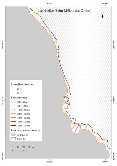 - Bouchard, V.; Digaire, F.; Lefeuvre, J.C.; Guillon, L.M. Progression des marais salés à l’Ouest du Mont-Saint-Michel entre 1984 et 1994. Mappemonde 1995, 4, 28–34. [Google Scholar]