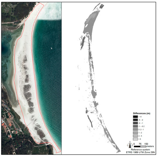 27] was used to analyze the coastline variation (in two dimensions) from aerial images. On the other hand, to analyze the volumetric variations, GCD (Geomorphic Change Detection) software was used [