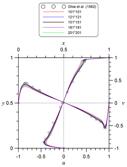 37. Ghia, U.; Ghia, K.N.; Shin, C.T. High-Re solutions for incompressible flow using the Navier-Stokes equations and a multigrid method. J. Comput. Phys. 1982, 48, 387–411. [Google Scholar] [CrossRef]