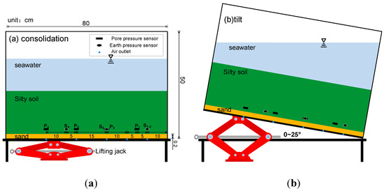 Schematic diagram of sedimentary soil sample preparation. (a) consolidation; (b) tilt.