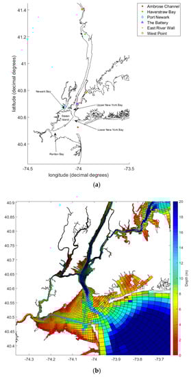 - Georgas, N.; Blumberg, A.F. Establishing confidence in marine forecast systems: The design and skill assessment of the New York Harbor Observation and Prediction System, version 3 (NYHOPS v3). In Proceedings of the 11th International Conference on Estuarine and Coastal Modeling, Seattle, WA, USA, 4–6 November 2009; pp. 660–685. [Google Scholar]