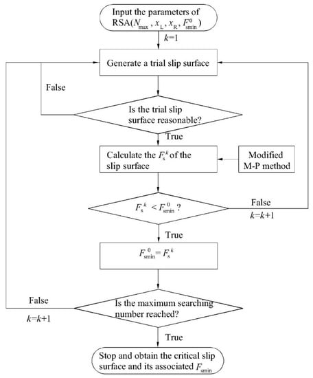 The Random Search Algorithm (RSA) is adopted to obtain the most dangerous sliding surface and the associated minimum safety factor for the unsaturated-soil slope. The detailed procedure for the RSA can be schematically illustrated in Figure 7.